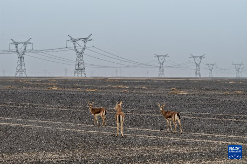 记者离开瓜州时,恰逢一群鹅喉羚在电网铁塔下活动,绘就出一幅野生动物与风电设施和谐共处的生态画卷,也见证着这片戈壁荒漠向绿色能源高地的华丽转变。