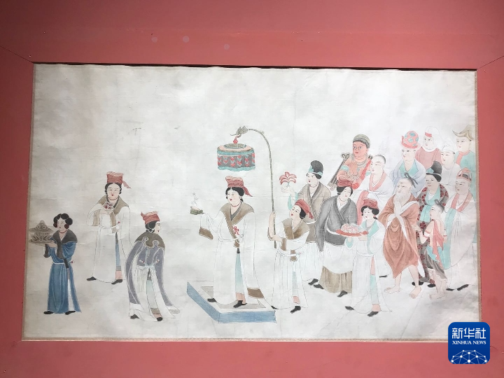 常沙娜16岁时临摹的敦煌壁画《吐蕃普赞礼佛图》(资料照片)。新华社记者 张玉洁 摄